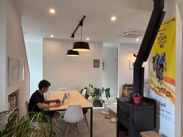 ★天草の雄大な自然の中を走り抜け、リモートワークは2階のカウンターで集中。