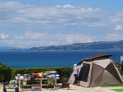 全サイトがオーシャンビューのキャンプ場では、波音をBGMに、海を眺めながらコーヒー片手に仕事の手を休める贅沢なひとときも素敵です。