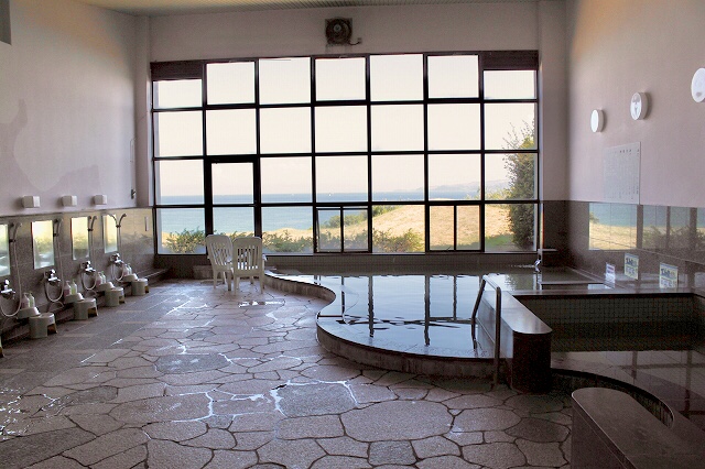 施設内には海を一望できる温泉とサウナも完備。デスクワークでこわばった身体も、じっくりと癒せます。