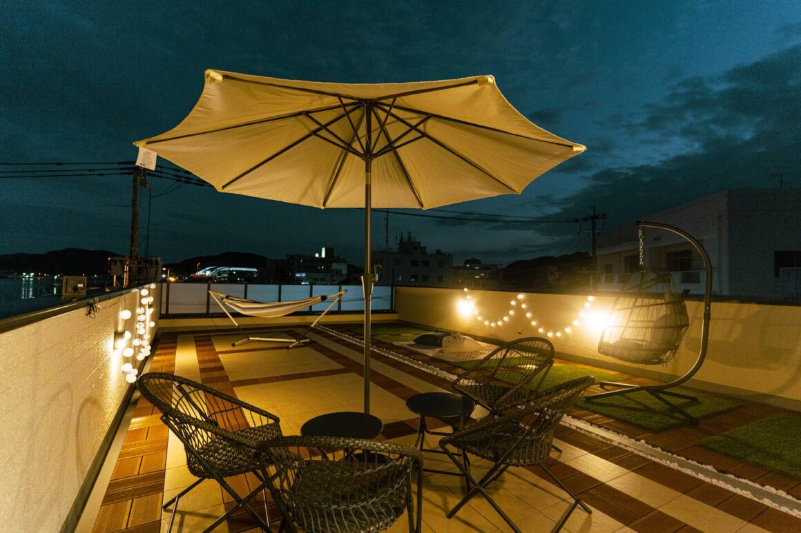 特に、夜の屋上テラスから見える海と橋の景色は格別。