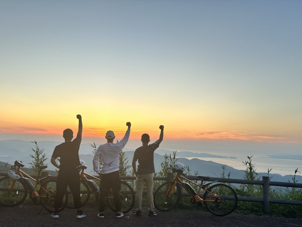 充実した電動アシスト自転車で、急坂も軽やかに登れます。体力に自信がない方でも安心して山頂を目指せます。