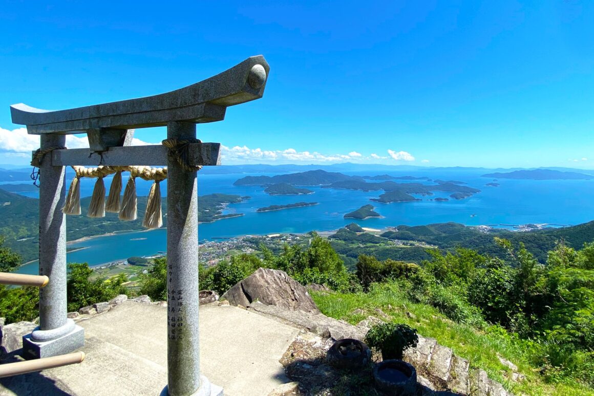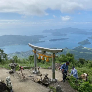倉岳神社の山頂からは、天草の海と島々が見渡せます。
